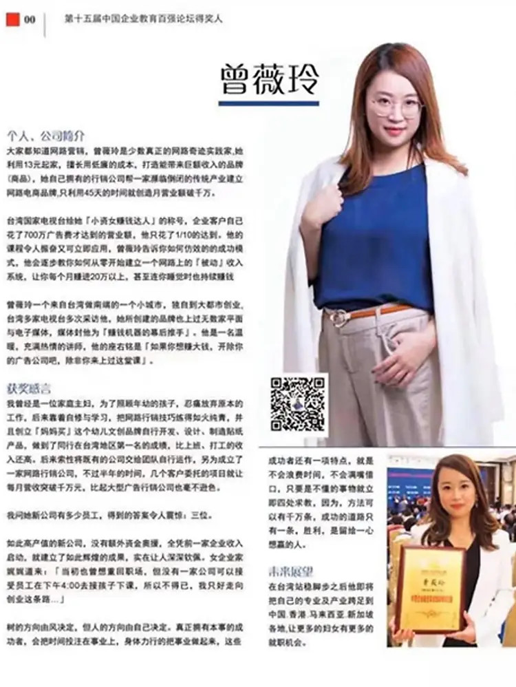 ● 不到兩年擁有千位正式課程學員,兩萬多位講座學員● 輔導的個人品牌一個月內成功變現6~7位數● 經濟日報、中視、台視、TVBS等多家媒體採訪● KKBOX百大podcast播客得獎人● 中國百大培訓師得獎人● 中國高級心理諮詢指導師● 中國高級香道師● 中國生命高級教練● AI自媒體高級營運師● 裕隆汽車行銷部企業內訓 講師● 聯輔基金會、經濟部、勞動部行銷講師